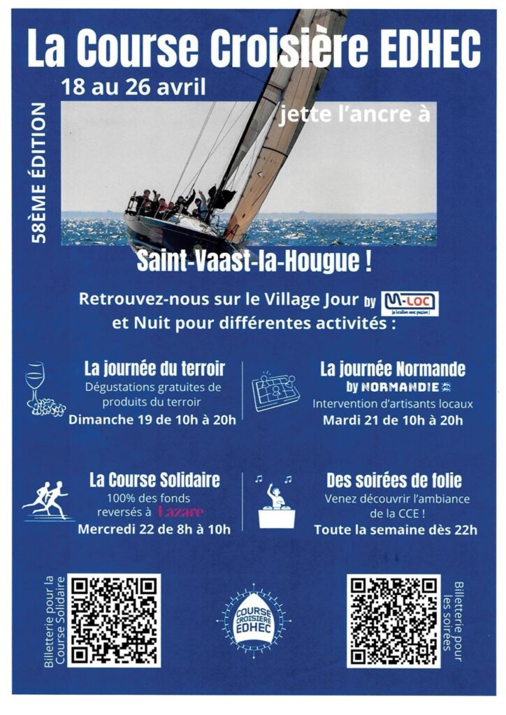 La commune de Saint-Vaast-la-Hougue accueille la 58e édition de la course croisière EDHEC. Cet évènement rassemble 2500 participants et accueille 12 000 visiteurs, confirmant son statut de premier événement sportif étudiant d’Europe.